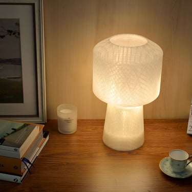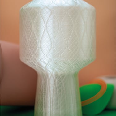 Kim Chu is a table top light designed using a custom built algorithm. 3D printed in semi-transparent bioplastics with the intention to reveal its internal wall structures, and to naturally diffuse the brightness from its internal LED light bulb.